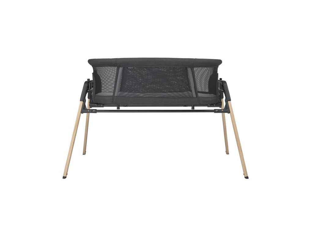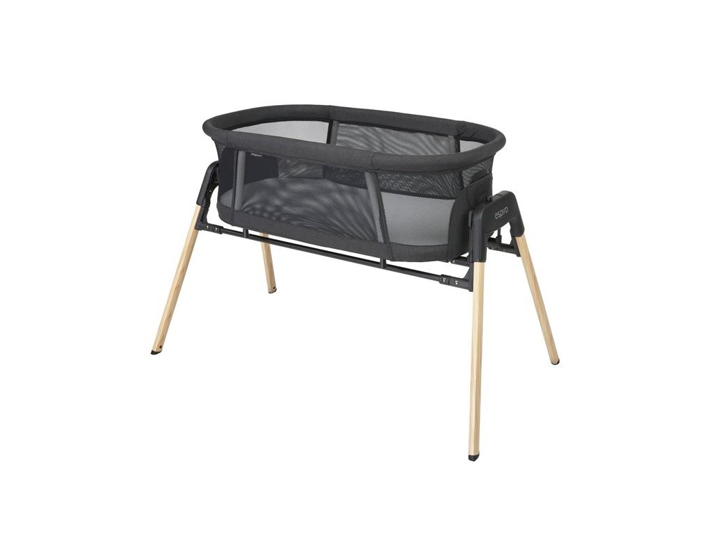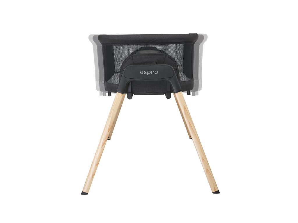 Návrháři kolébky si dali záležet i na designu, který jej představili v černé a šedé verzi, což v kombinaci se strukturou připomínající dřevo na stabilních nohách skvěle doplňuje současné interiéry.