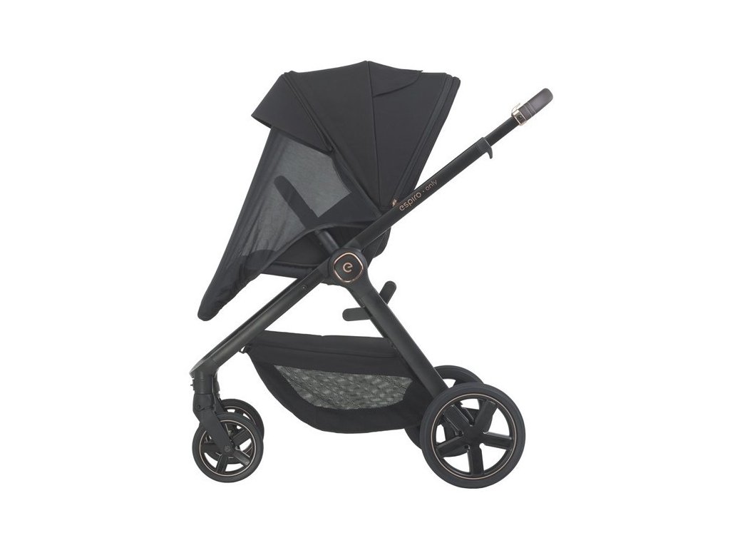 Dítě cestující v kočárku Espiro Only se bude cítit opravdu dobře, i když se mění počasí. Stříška korby má panoramatické ventilační okénko, díky kterému k dítěti proudí více čerstvého vzduchu. Lze ji také rozložit na velikost XL, aby dítě chránila před chladem nebo slunečními paprsky. Výhodou stříšky je integrovaná moskytiéra, která chrání dítě před hmyzem.