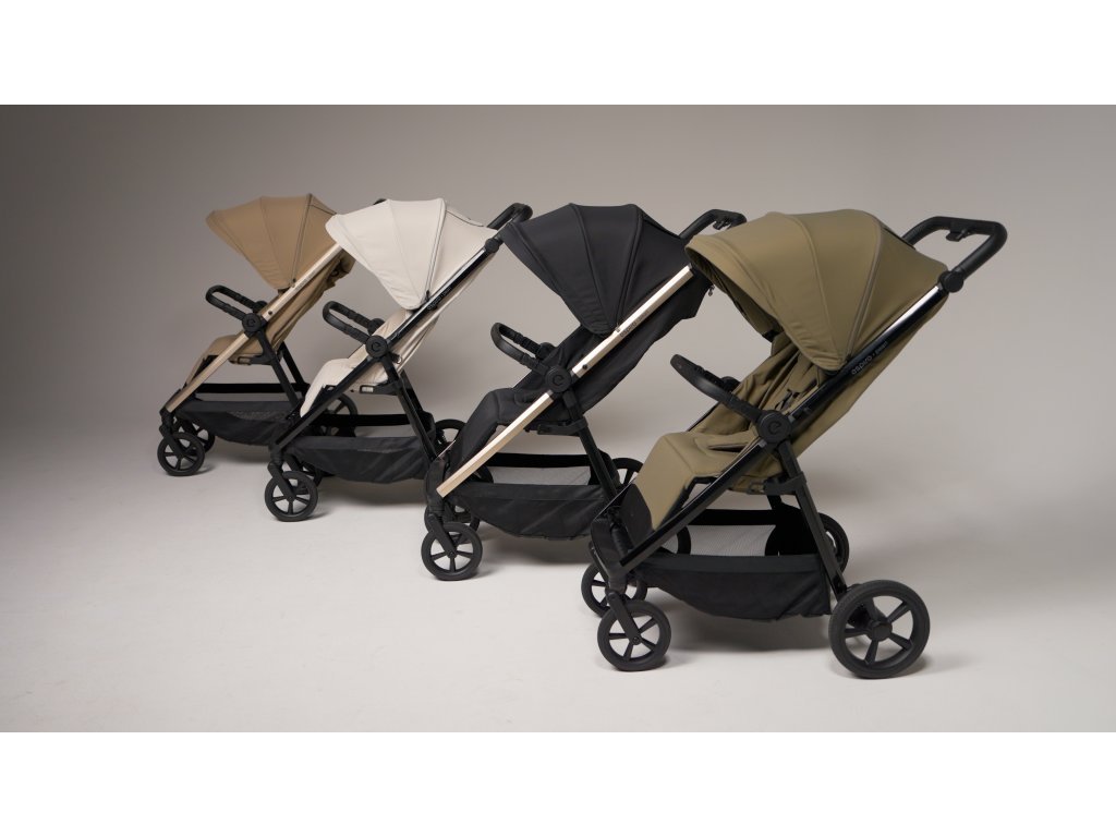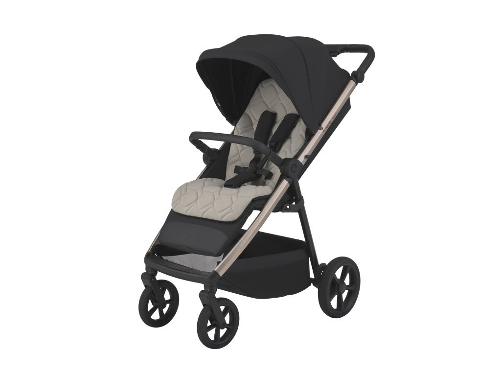 Kočárek Espiro Pearl má v ceně: vnitřní prodyšnou vložku, nánožník, držák na nápoje, dětské madlo a i poruh k jednoduchému přenášení složeného kočárku.
